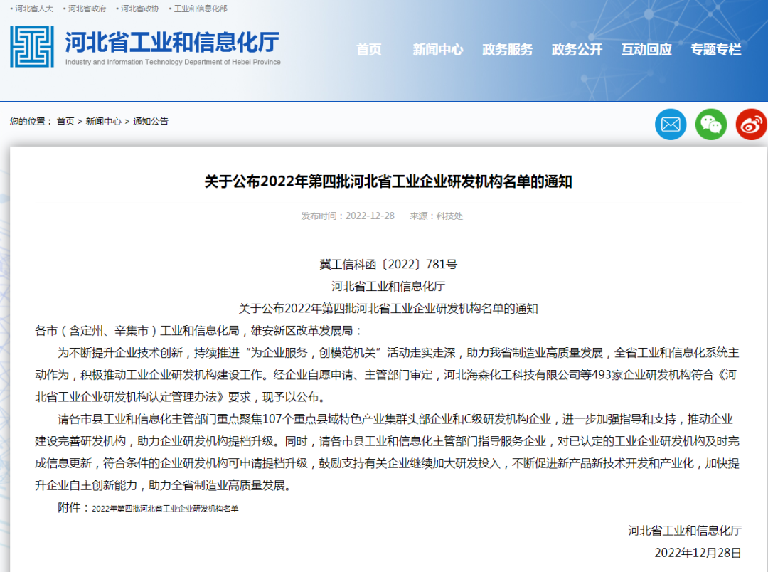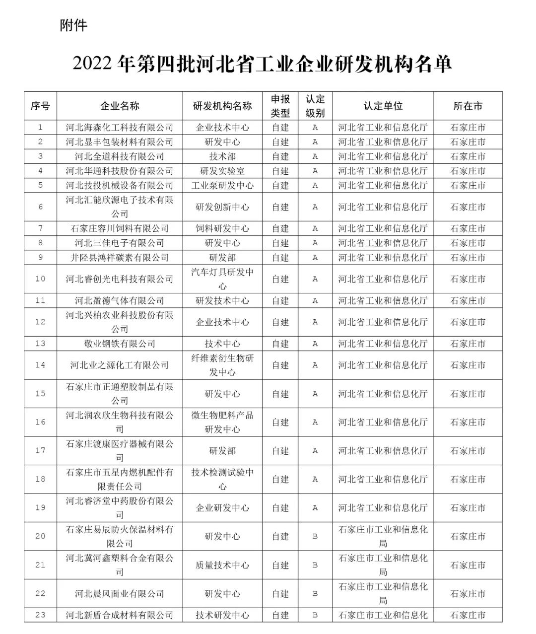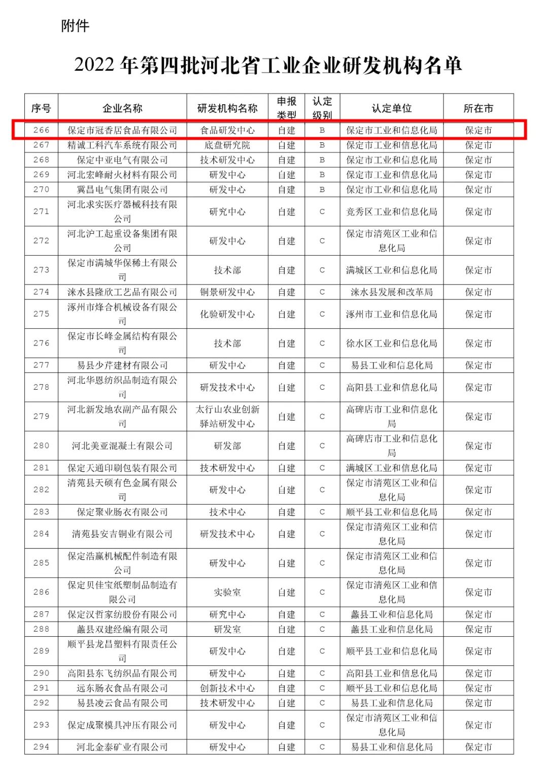 恭喜冠香居公司榮獲2022年第四批河北省B級工業企業研發機構