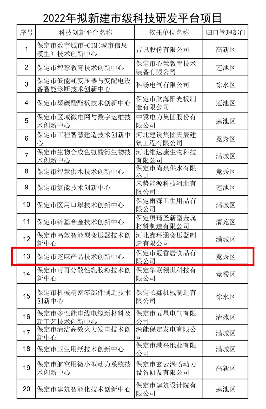 恭喜冠香居公司建立保定市芝麻產品技術創新中心